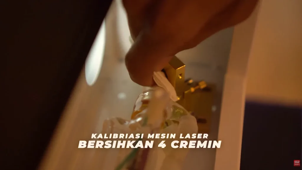 - Bersihkan cermin minimal seminggu sekali atau setelah sesi cutting yang panjang, terutama jika memotong material yang menghasilkan banyak asap seperti kayu atau akrilik.