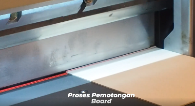 Setelah itu masuk dalam proses pemotong board dengan membaginya menjadi 4 buah seperti ini. Dua buah untuk sisi dan dua buah lagi sebagai alasnya.