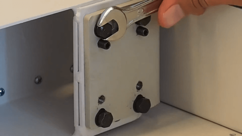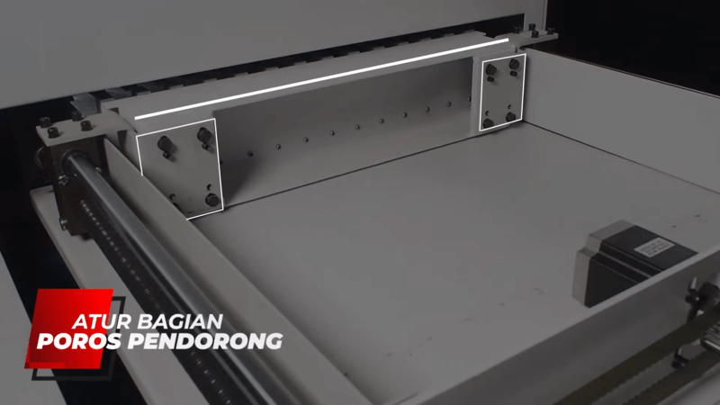 - Yang pertama kita bisa cek pada bagian poros yang ada pada bagian kap belakang Mesin Potong Kertas Telson MP490 ST, dimana bagian kanan dan kiri pada poros mesin ini terdapat 4 baut di setiap bagiannya dan ada dua baut kecil.