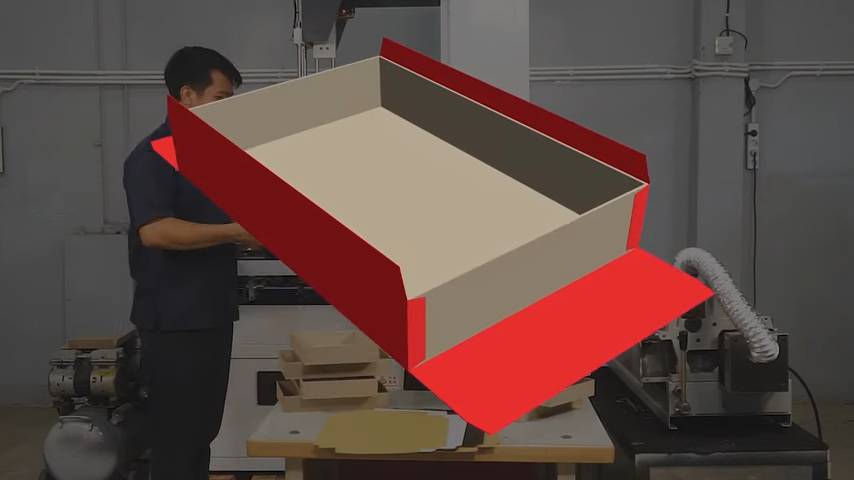Secara rapi dan cepat melipat kertas cover bagian samping dan bagian dalam. Hal ini adalah salah satu kelebihan Mesin Rigid Box Forming FL-540Z yang tidak dimiliki mesin lainnya. Karena kebanyakan mesin pembuatan kemasan ini hanya bisa melipat 4 sisi cover bagian luar.